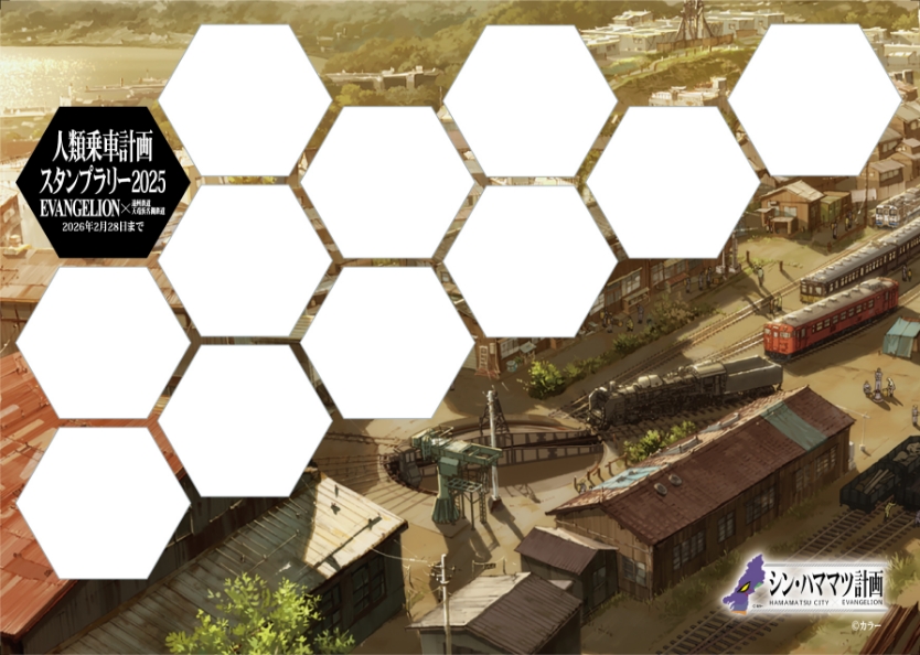 期間中、浜松市内他22箇所に全10種+シークレット1種のエヴァンゲリオンスタンプが用意されています。